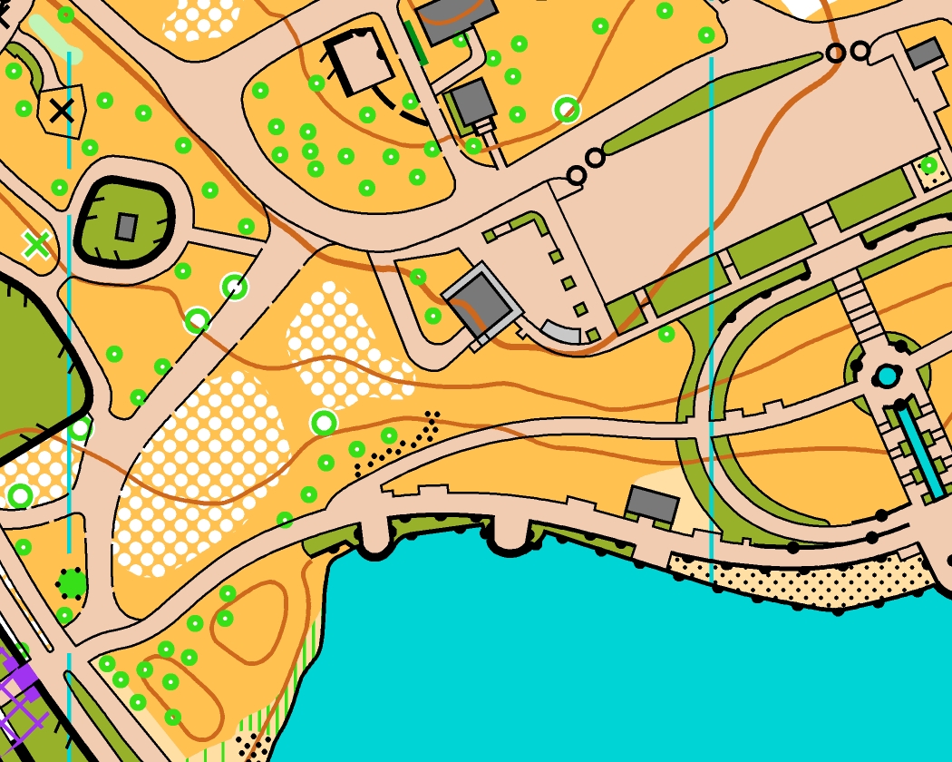 This ¾ km2 map was complete in September of 2023 for the 2023 Ontario Orienteering Championships in Waterloo. While the park is a typical city park it includes an excellent variety of terrain which made for an interesting set of sprint courses. One of the challenges of this project was that the most interesting part of the park was recently rebuilt and all of the base data was from previous to that construction. Some creativity and some aerial photography from the construction company were required to complete that portion.